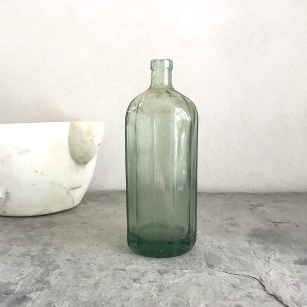 Ancienne bouteille en verre vert côtelé