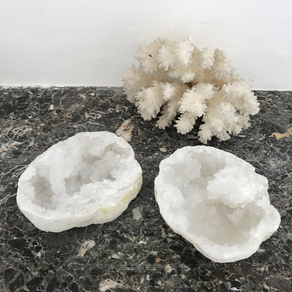 Géode en cristal de roche avec ses deux morceaux complémentaires
