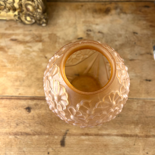 Grand vase boule Art Déco en verre dépoli rose au décor de marguerites en relief