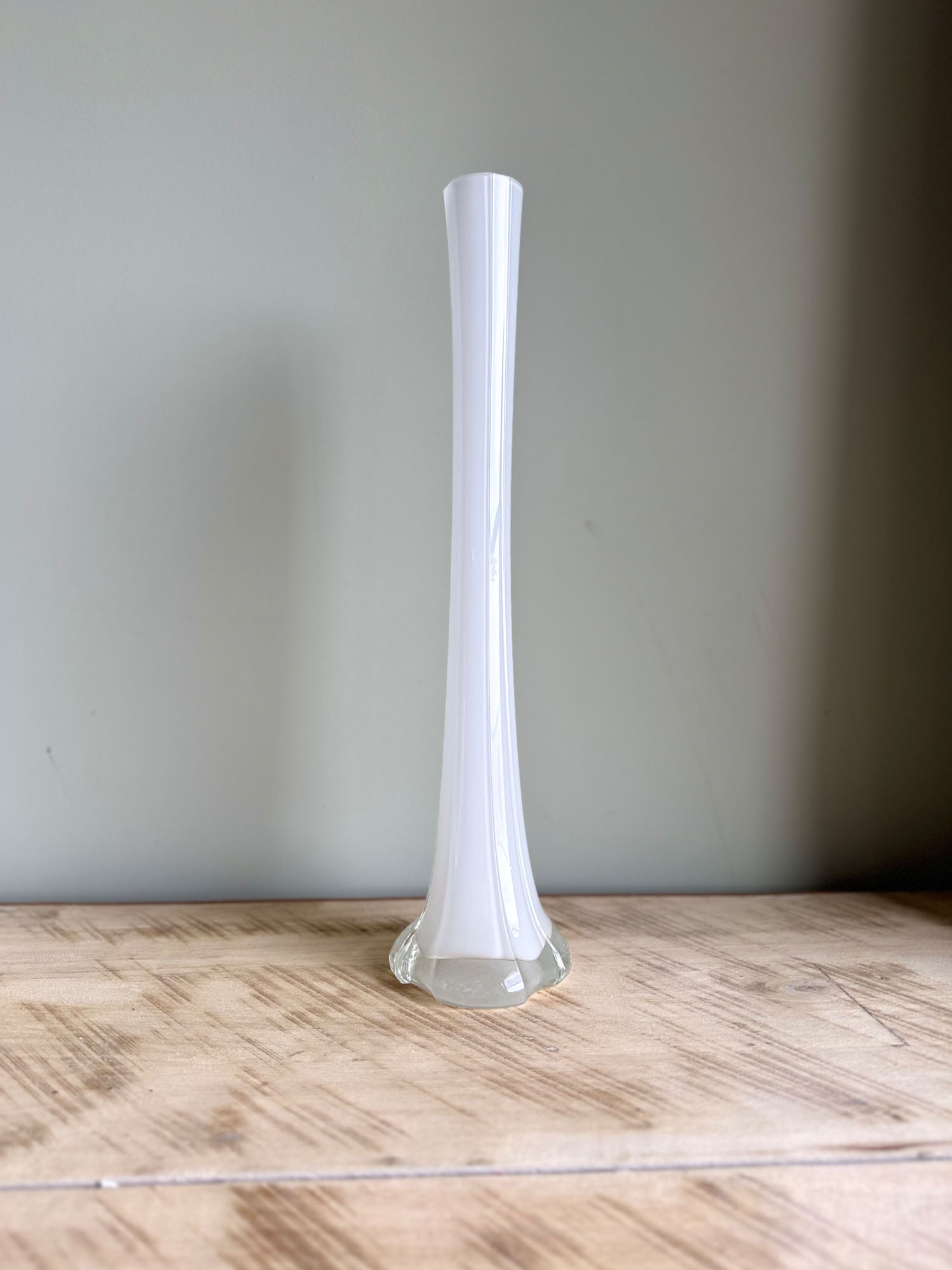 Grand vase soliflore en verre blanc opaque