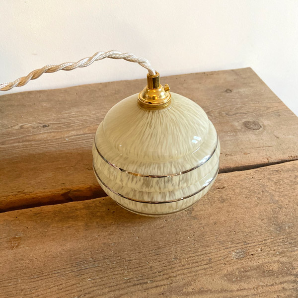 Lampe baladeuse à poser ou à suspendre composée d’un globe en verre de Clichy jaune