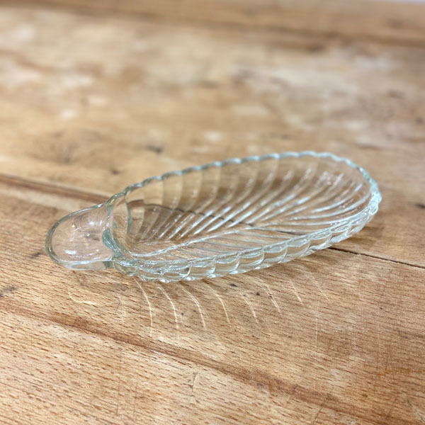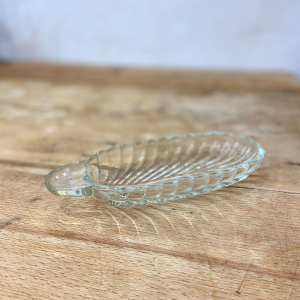 Ancien ramequin, ravier ou coupelle en verre vintage en forme de feuille
