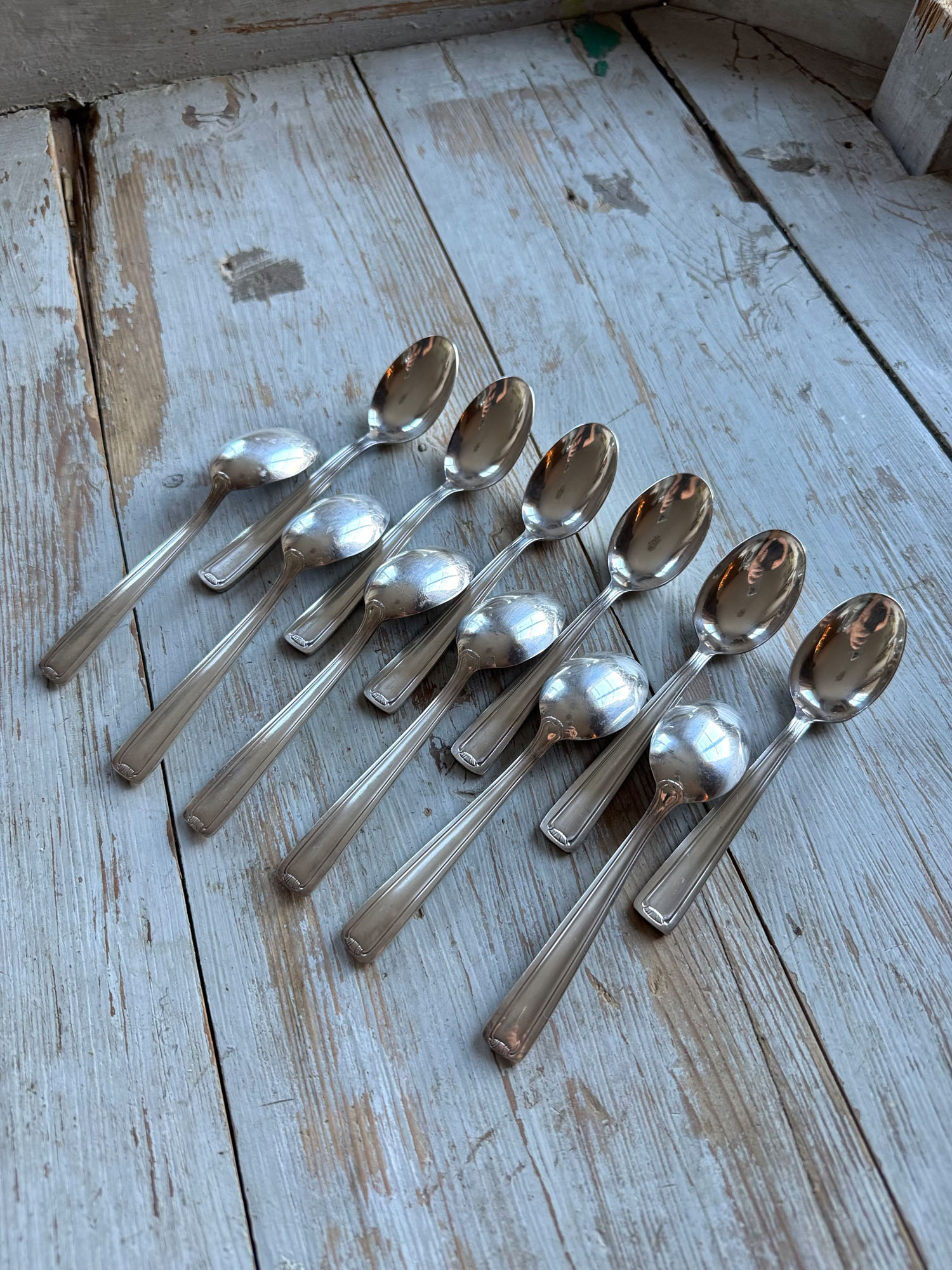 Série de 12 cuillères à dessert, métal argenté